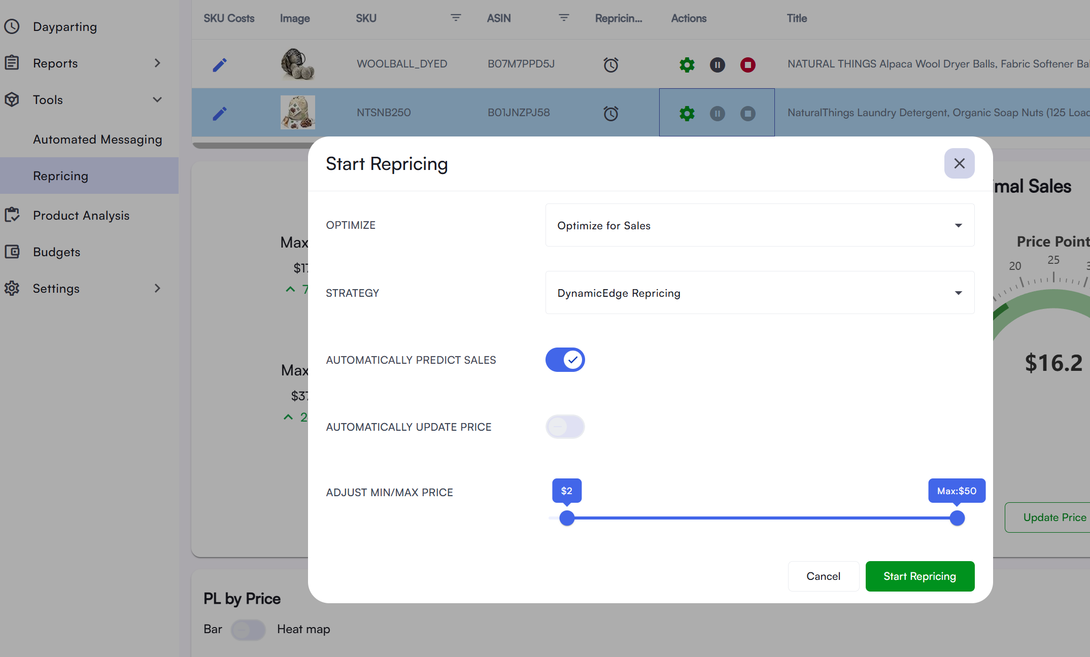 Reprice your branded products for max sales or profit.Your brand terms deserve first shot at the sale. Automated repricing for branded SKUs protects margins while keeping you competitive so your Sponsored placements actually convert.