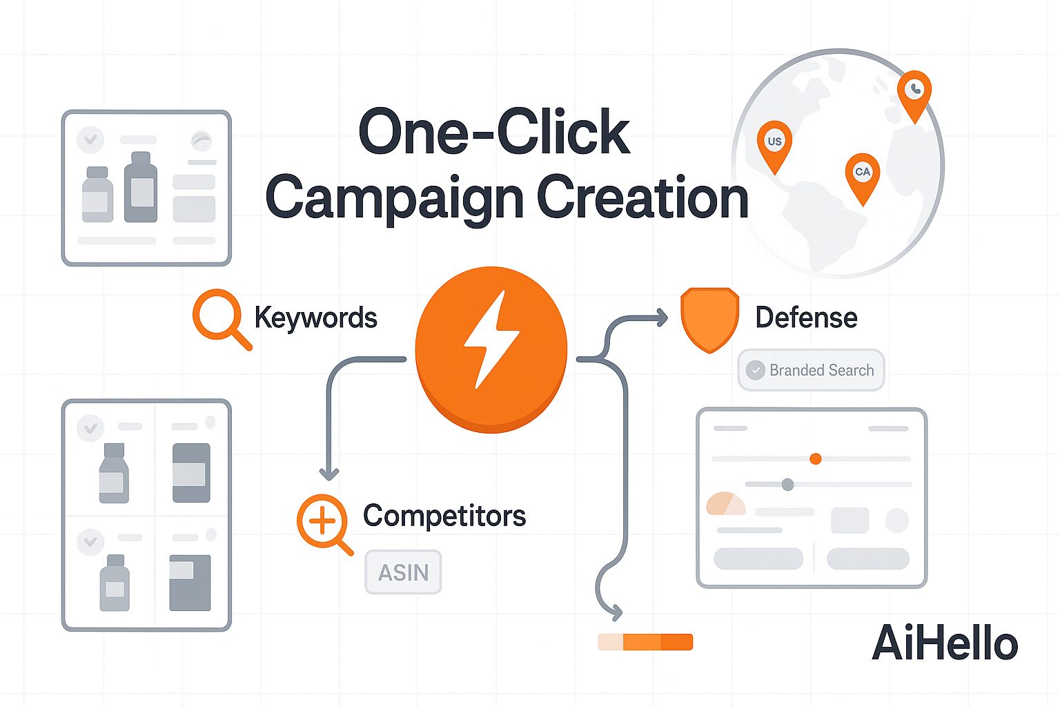 Create Hundreds of Amazon Campaigns in One Click: Automated Keyword Harvesting, Competitor Offense & Brand Defense with AiHello